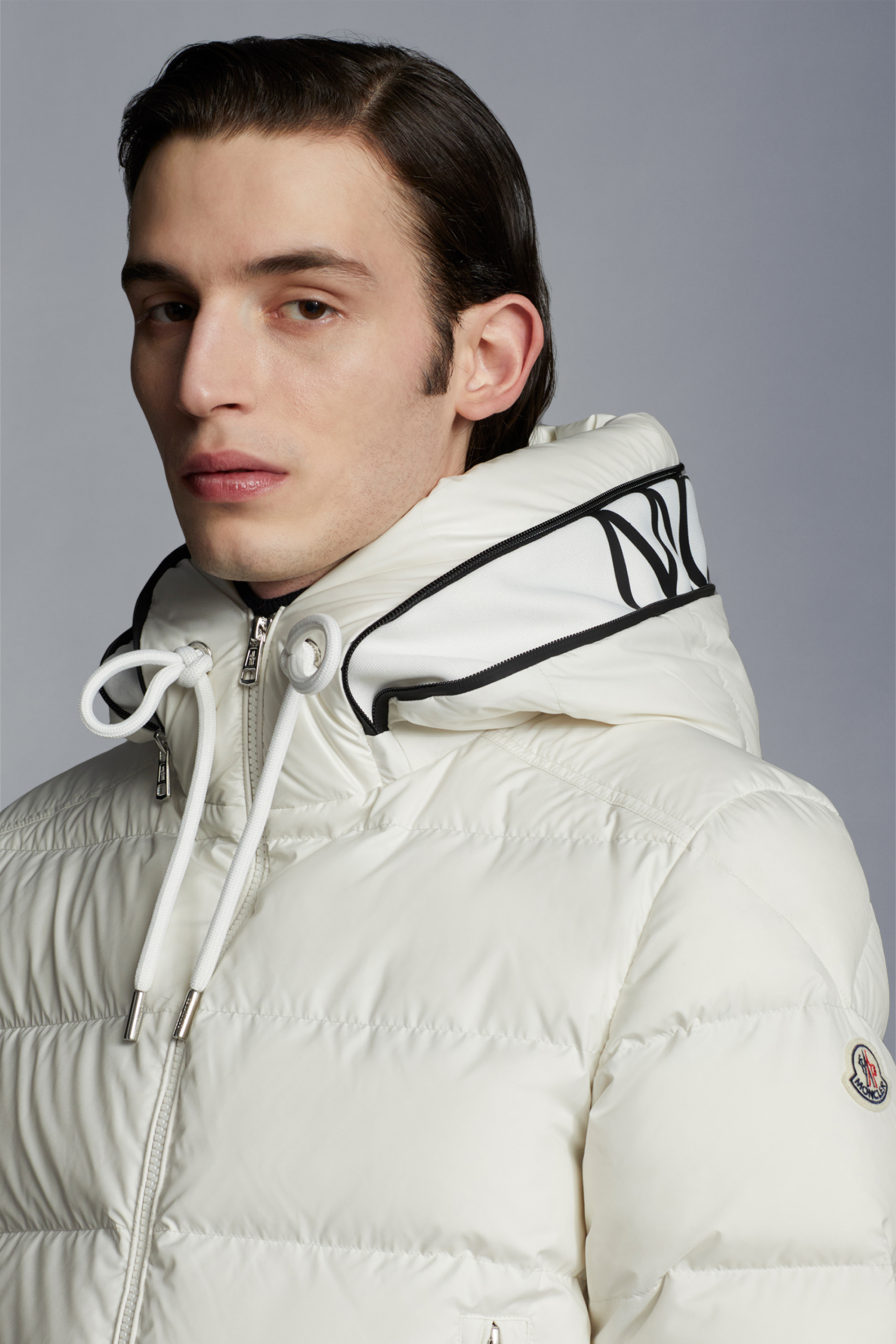 環境負荷の少ない素材を使用したモンクレールのこだわりを象徴するCardereショートダウンジャケットは、リサイクルポリエステル素材を使用しています。ブラックとホワイトのカラーが特徴で、調節可能なフードにはロゴをあしらっています。