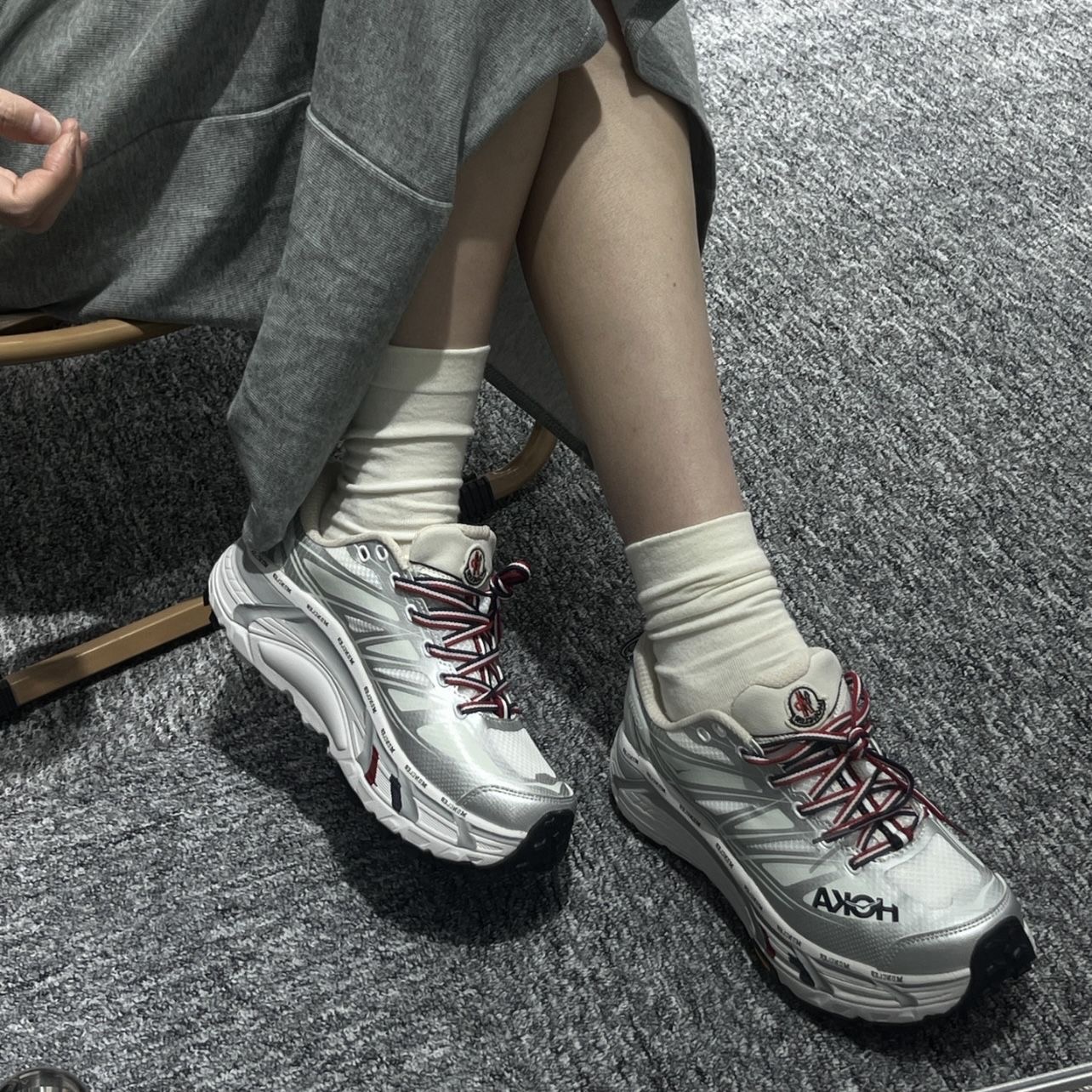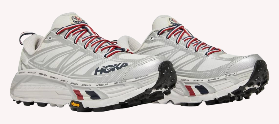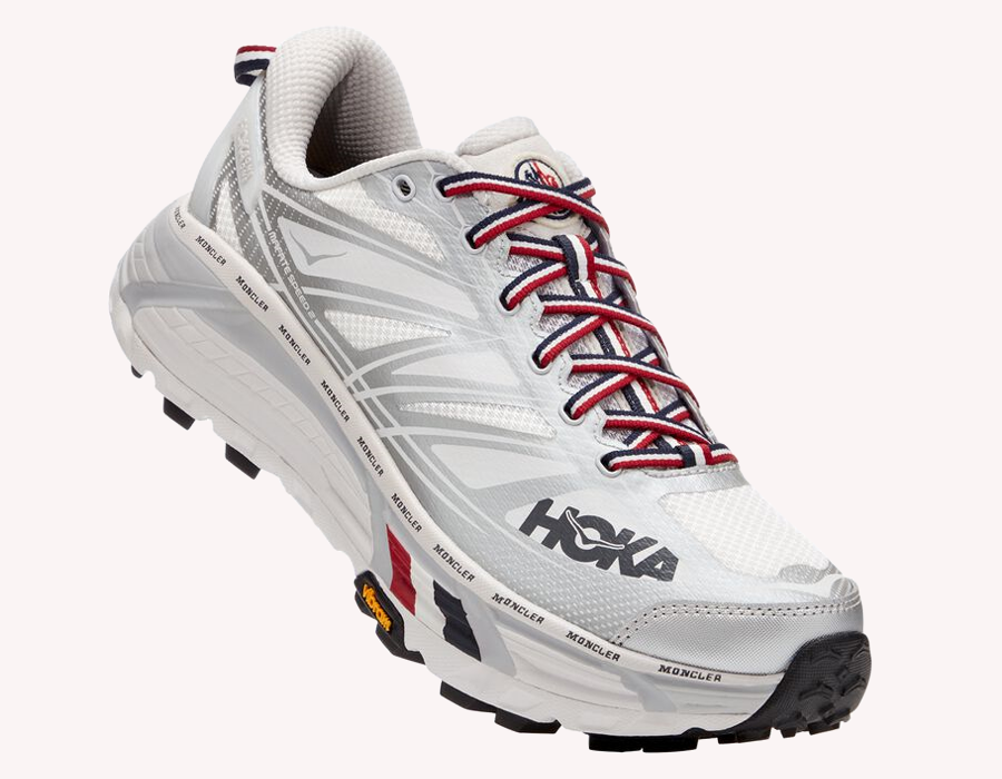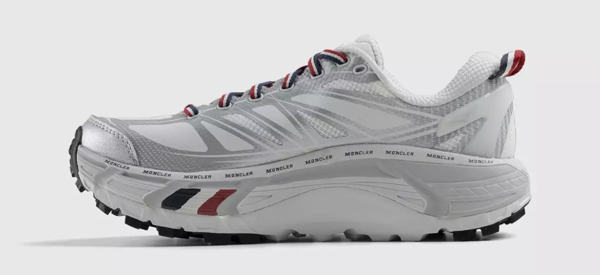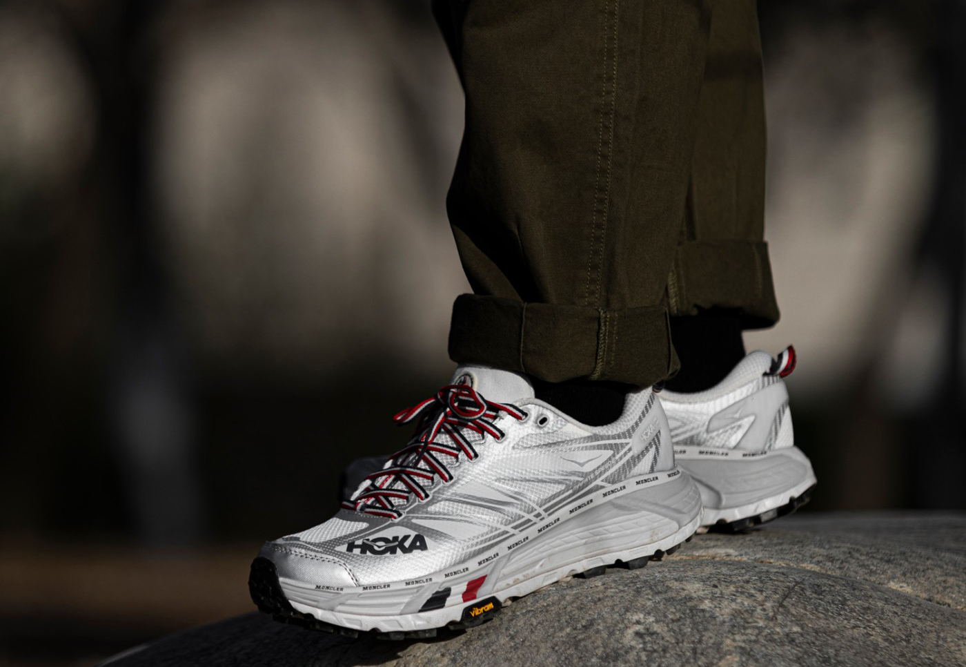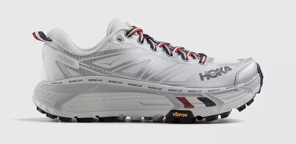 HOKAの革新的なトレイルランニングシューズのファーストモデルである「MAFATE SPEED」は、最高のパフォーマンスを発揮するためにデザインされました。Vibram®メガグリップアウトソールとHOKAの独自のクッション性、スムーズな足運びを実現するメタロッカージオメトリーがテクニカルな路面で優れたパフォーマンスを発揮します。そこにMonclerのアイコニックなトリコロールカラーのディテールとフェルトパッチを備え、シルバーにアップデートされたのが今回のコラボレーションモデルです。頑丈でアグレッシブ、しかも軽量で快適なシューズです。