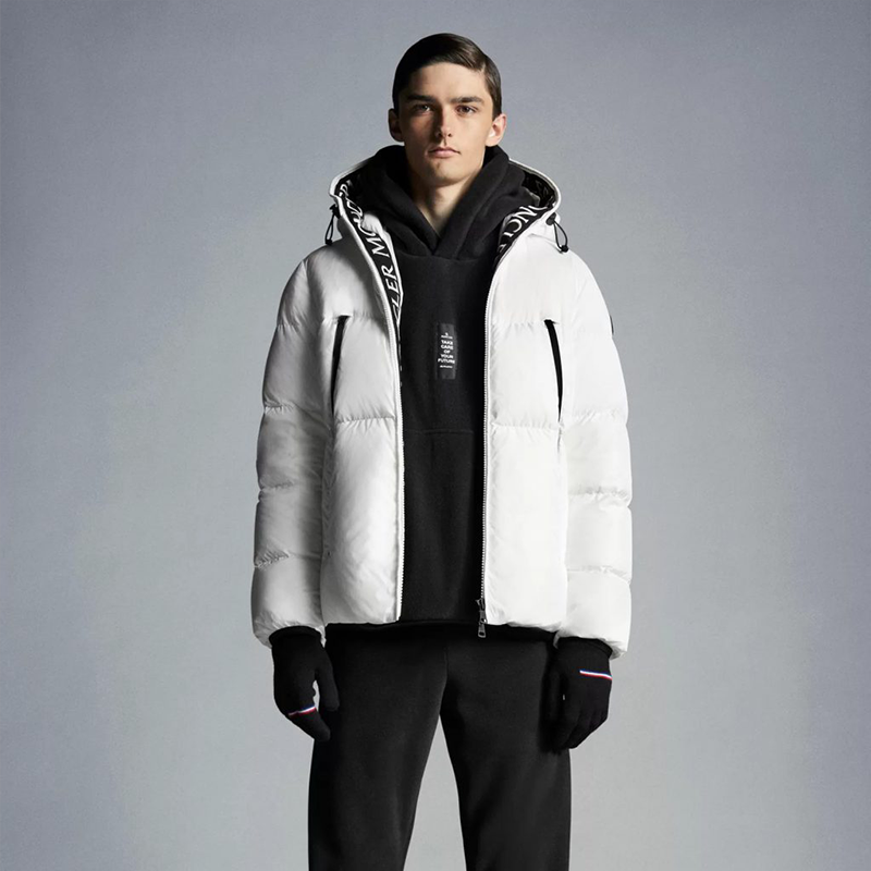 ナイロンの撥水素材にグログランのロゴバンドをあしらったMontclaショートダウンジャケットは、スキー場から街中まで幅広く対応します。
